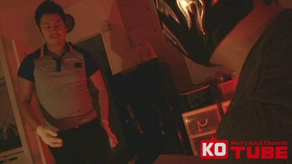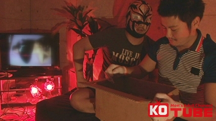「宅配便でーす!」…カギが開いている。中は薄暗くいやらしい音。部屋に入ると覆面の二人組が…